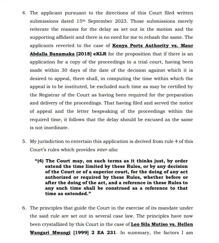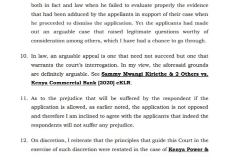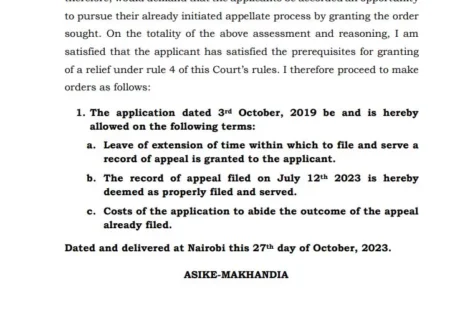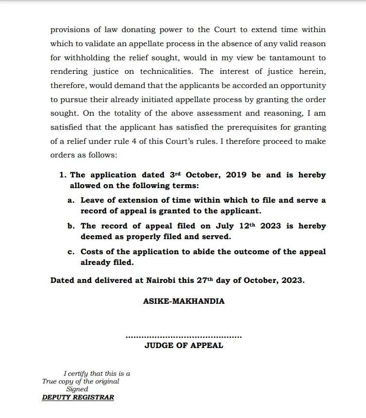 “In the appeal record, the applicants have listed 23 grounds of appeal. One of these grounds asserts that the learned Judge erred in fact and law by inadequately evaluating the evidence presented by the appellants in support of their case, leading to the dismissal of their application. The applicants argue that they had raised legitimate questions and concerns that deserved thorough consideration,” notes Judge of Appeal Asike Makhandia in a ruling dated October 27, 2023.