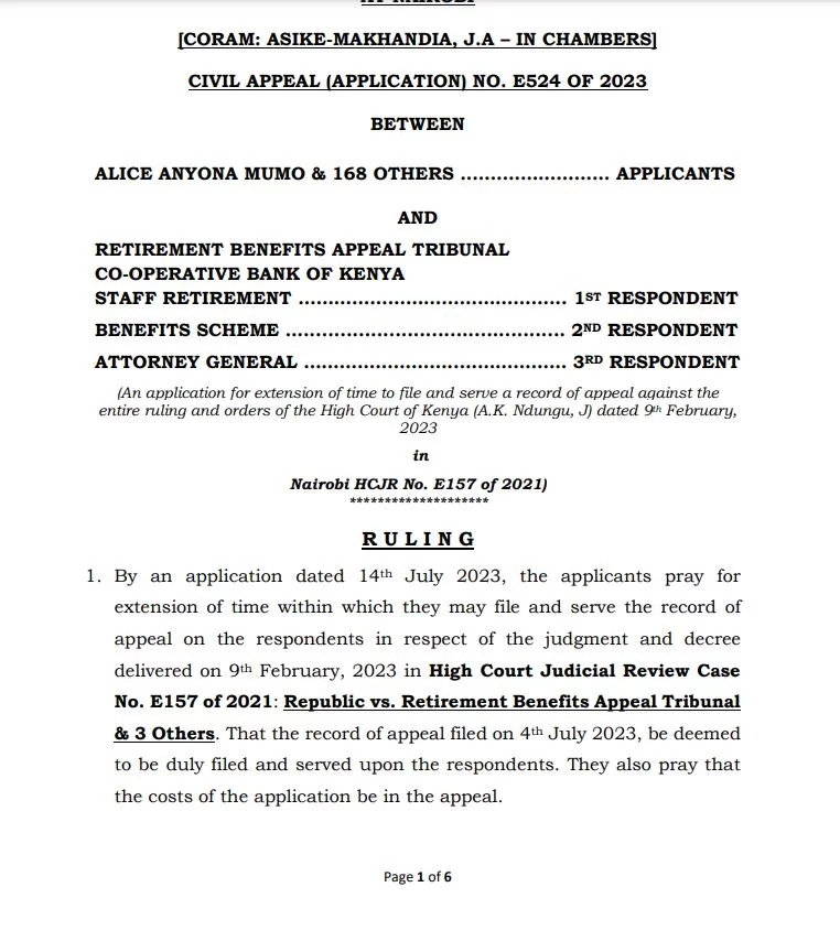 Judge of Appeal Asike Makhandia has taken action by instructing Co-operative Bank to furnish the applicants with the court transcripts that influenced the decision made on February 9, 2023.