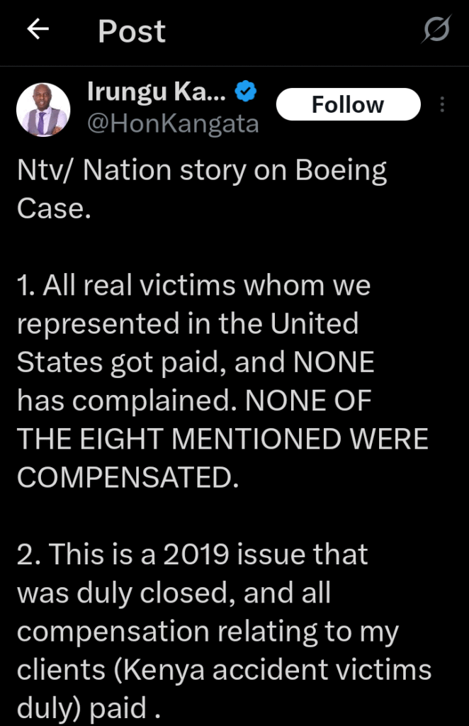 After admitting responsibility, Boeing set up a massive $500 million compensation fund to support the victims’ families. Each was supposed to receive around $1.2 million, and the process was supposed to begin in 2020. But it seems that Kang’ata saw an opportunity to exploit the situation.
