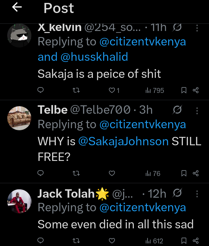 Several users have openly said that Sakaja should be held responsible for turning a peaceful protest into a battleground. Some have named his close associates like Gaucho and Swale Sonko as the ones used to organize the chaos.