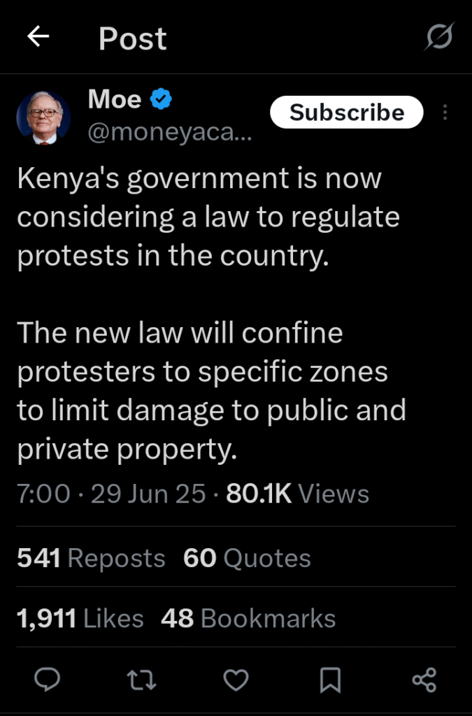 But in reality, this is not about protecting businesses or public spaces. It’s about making it harder and scarier for Kenyans to exercise their right to speak out. It’s about turning protests into controlled shows, far from the eyes of those in power.