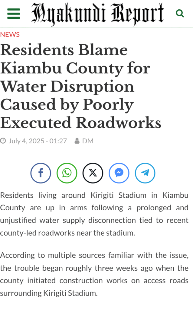 According to details exposed by Cyprian Is Nyakundi, the issue began roughly three weeks ago when the Kiambu County Government launched road construction near Kirigiti Stadium.