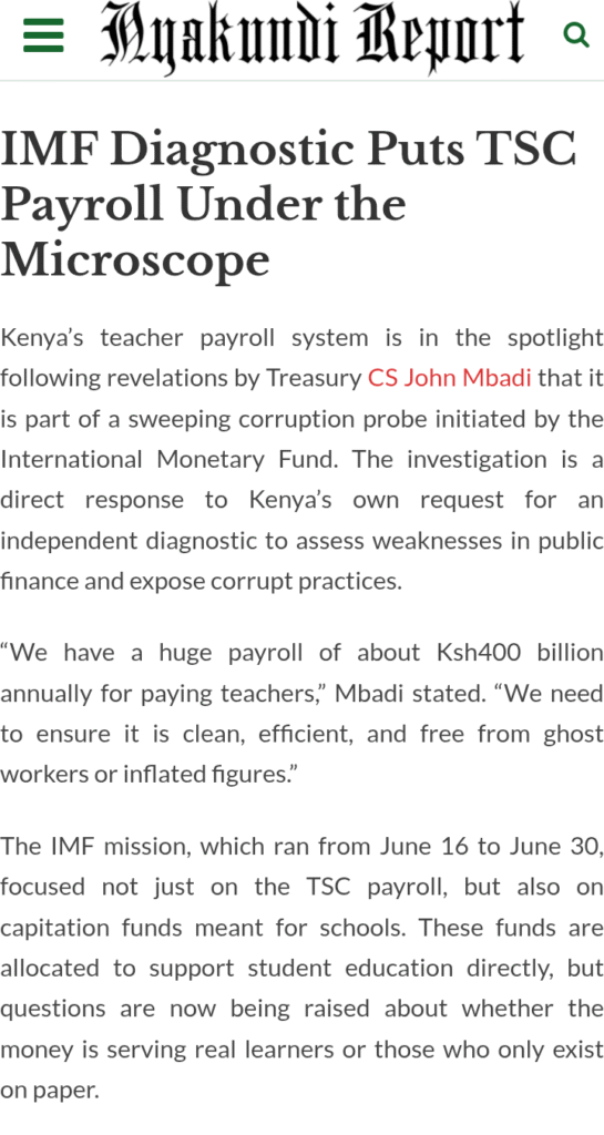 A full report is expected by October 2025, and while Mbadi said he believes the report should be made public, the final decision will be left to the Cabinet. If the report is made public and it confirms major fraud in how teachers are paid or how student numbers are reported, there could be serious consequences.