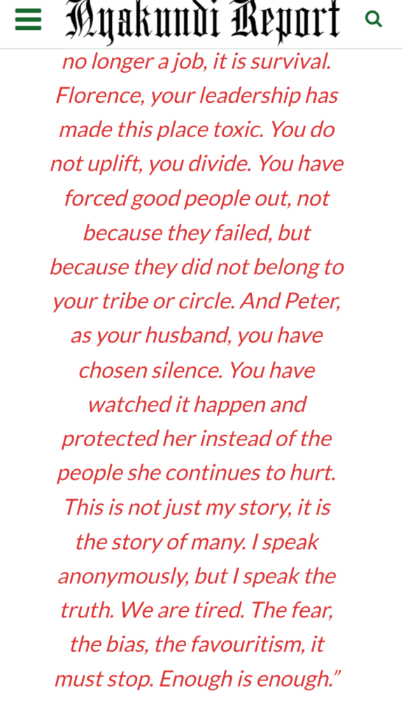 If more workers remain silent, this abuse will only spread. The anonymous worker who reached out to Cyprian Is Nyakundi has taken the first brave step. Others should be encouraged to speak out, not just for themselves but for the thousands of others in similar situations.