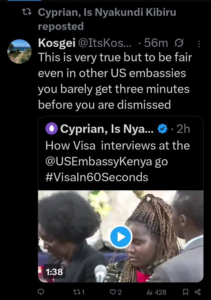 His posts describe the Nairobi embassy as a “serious crime scene,” where hardworking citizens, doctors, businesspeople, and students are treated with disrespect and dismissed in less than a minute.