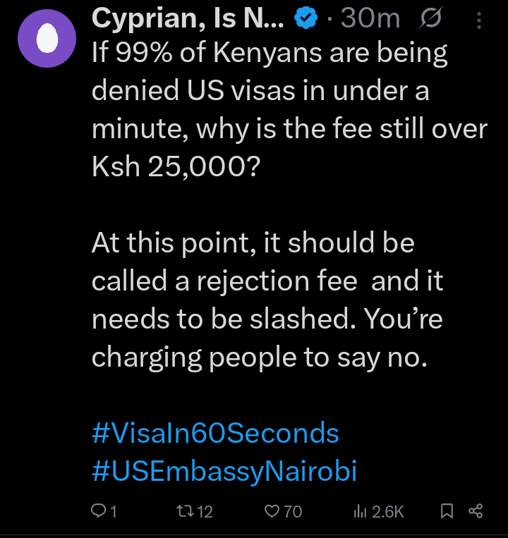The Nairobi embassy’s approach has led to frustration, distrust, and even anger. It seems like the system is more interested in making money than in allowing genuine travelers a fair chance.