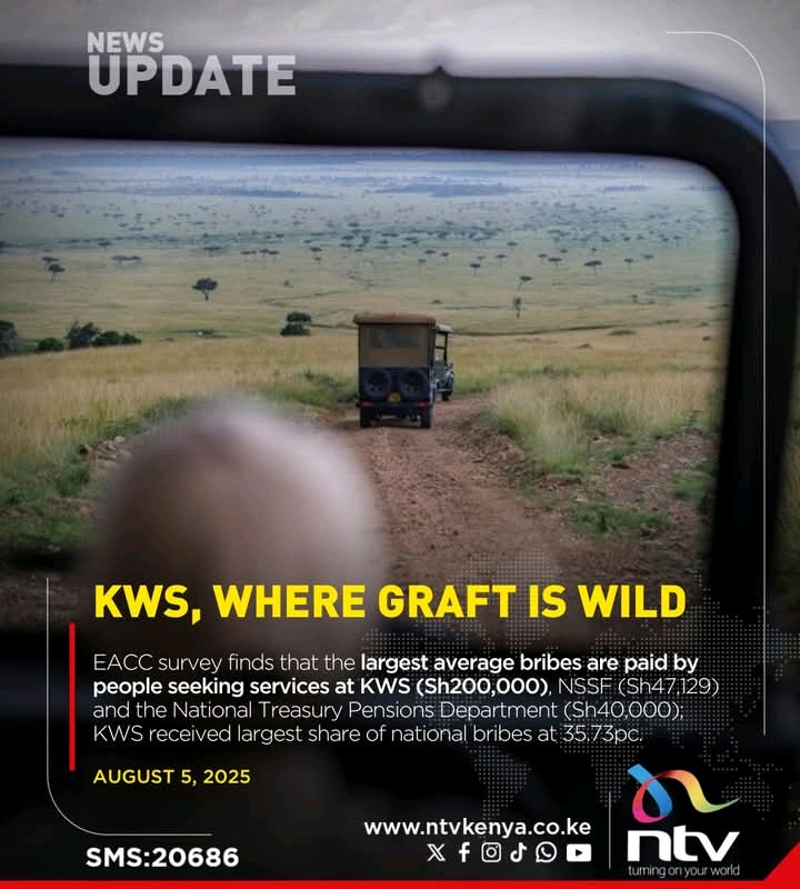 The report places KWS at the top of the list, citing extremely high bribe amounts especially related to employment. Data shows that job seekers at KWS were forced to pay over KSh200,000 in bribes to secure positions, which is significantly higher than the national average bribe of KSh4,878 reported for the same year.