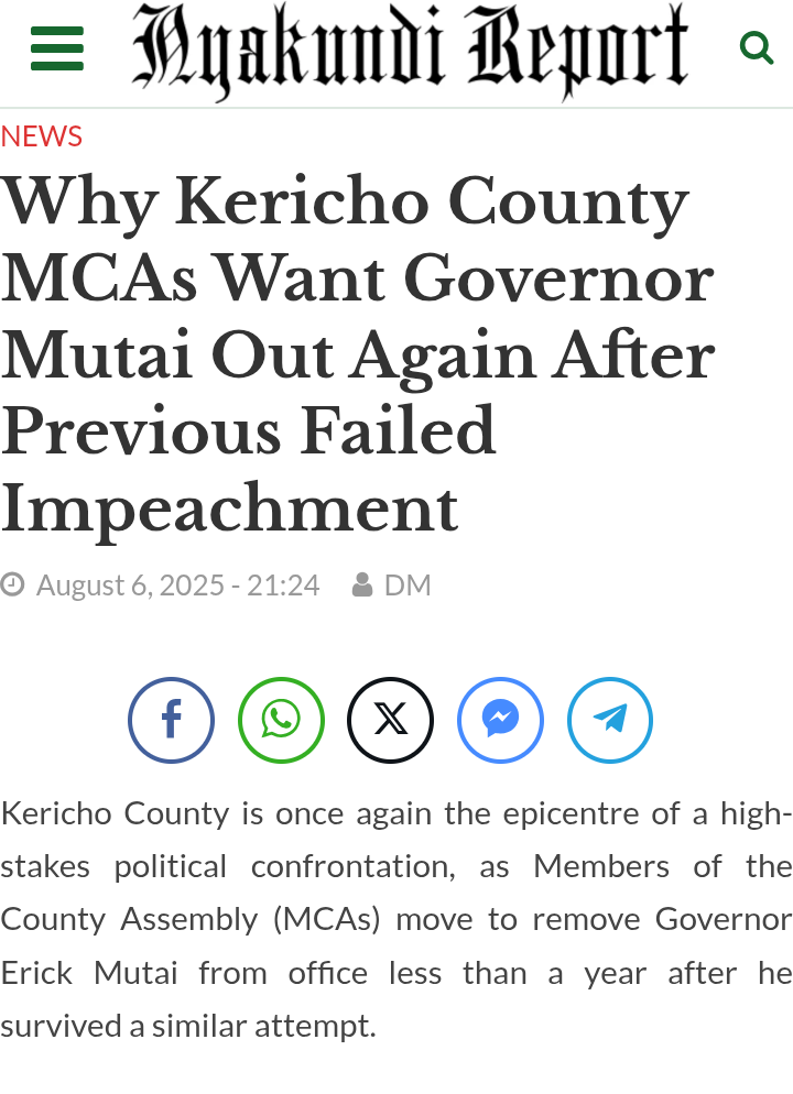 Although no date has been announced yet, many expect a tough and drawn-out process. Governor Mutai still enjoys support among some MCAs, just like he did during the first attempt. But this new push could have wider consequences beyond Kericho.