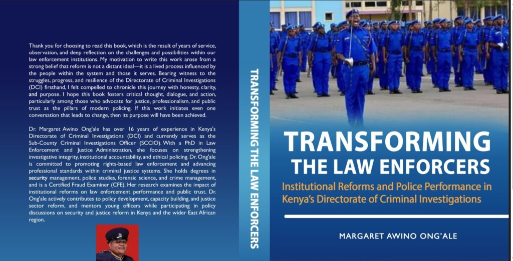 Dr. Margaret Awino Ong’ale, the first DCI female officer to earn a doctorate degree, has officially launched her new book Transforming the Law Enforcers, a detailed and research-backed examination of how targeted reforms within the Directorate of Criminal Investigations (DCI) can improve performance, ethics, and public service delivery.
