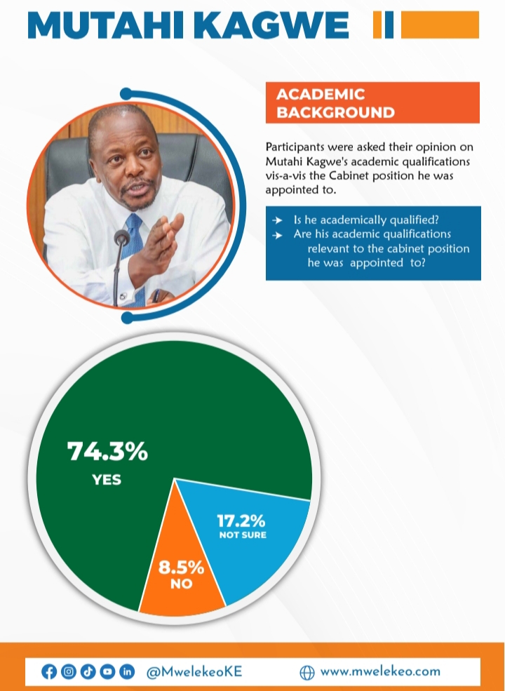 The survey also examined Mutahi Kagwe, appointed as CS for Agriculture and Livestock Development.