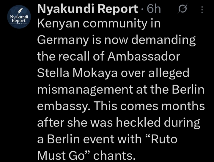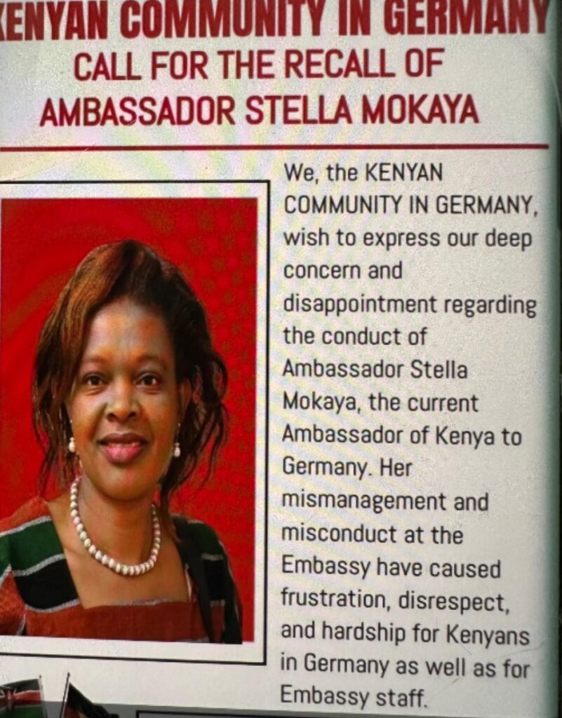 The Kenyan community living in Germany has raised concerns about the performance of their country’s representation in Berlin, with a growing number now demanding the immediate recall of Ambassador Stella Mokaya Orina. Members of the diaspora argue that the embassy has fallen short in delivering essential services, leaving many feeling frustrated and neglected.