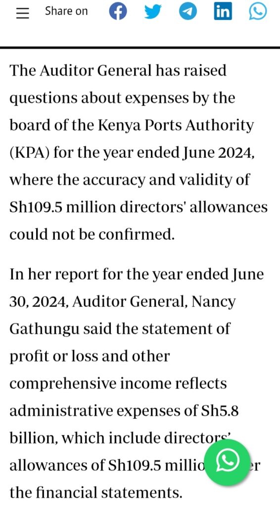 The Kenya Ports Authority (KPA) has faced scrutiny over its financial management after the Auditor General flagged several irregularities in the year ended June 2024.