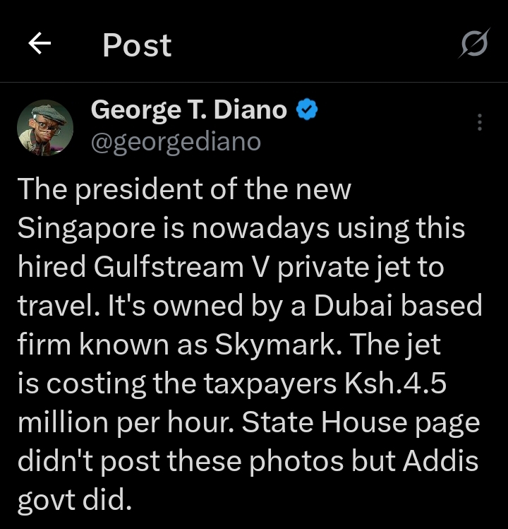 Public frustration spilled over on social media, with Kenyans questioning why the president avoids commercial flights when asking citizens to endure more taxes. Some posts mocked the government’s vision of making Kenya “the new Singapore,” saying it is impossible to achieve when millions are spent on luxury flights.