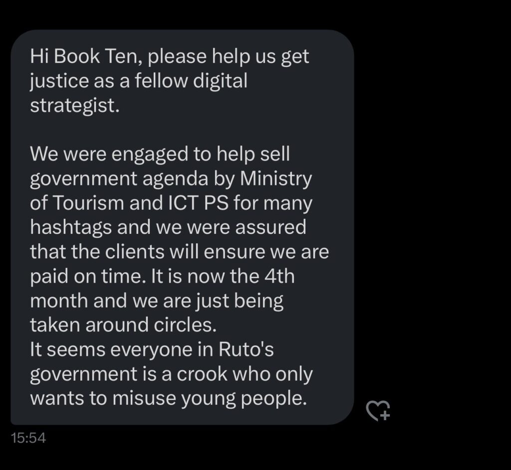 Several content creators who were engaged to market Kenya’s tourism and ICT projects say they completed their assignments but never received their promised compensation.