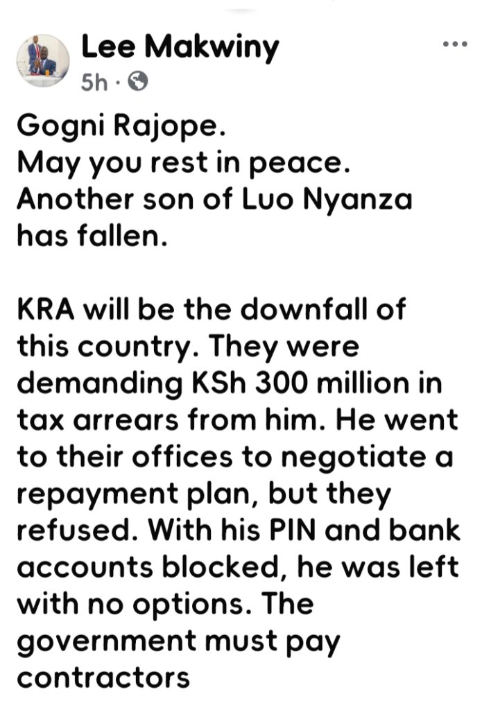 Reports show he had been handed a staggering KSh 300 million tax bill and lived under constant threats and humiliation from KRA officers.