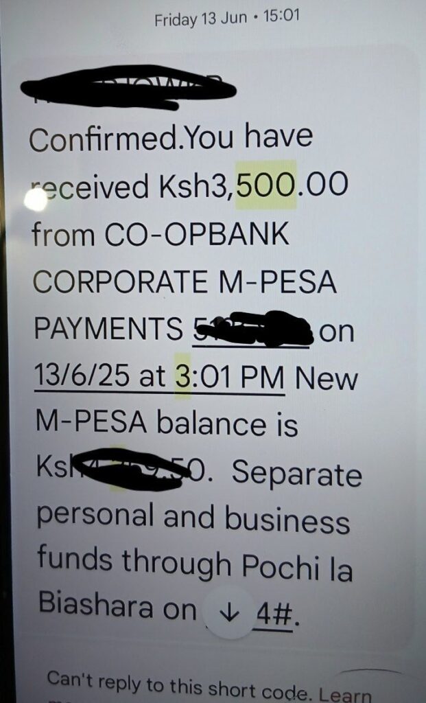The workers say they were expecting their usual KSh3,500 but instead received KSh3,460 after the Nairobi County Government directed that all payments be made through Sidian Bank.