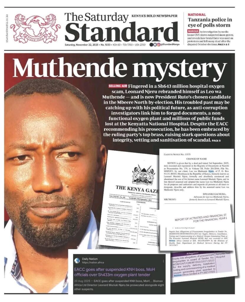 Many Kenyans are now expressing deep concern after new information surfaced about the UDA candidate for Mbeere North, Leonard Muriuki Muthende. The report claims that he is involved in a serious corruption case that has shocked the country.