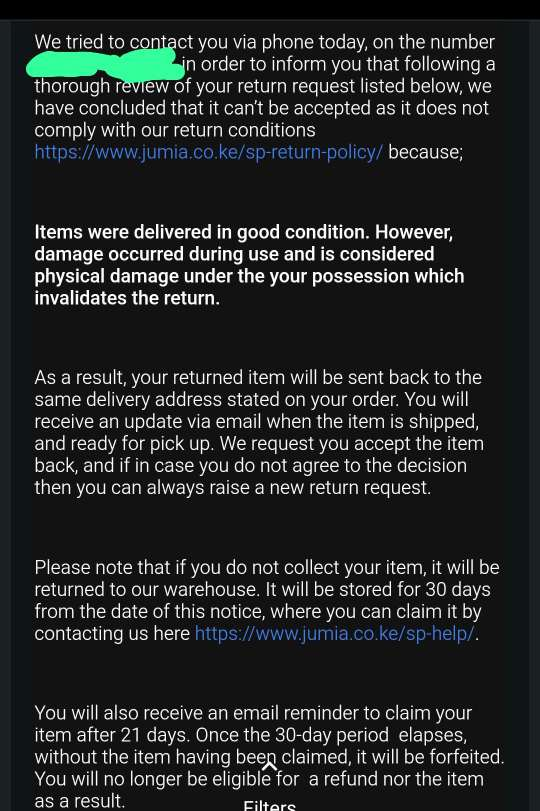 Feeling disappointed and frustrated, the buyer said they contacted Jumia to request a return, which they believed was reasonable given that the product was faulty on arrival.