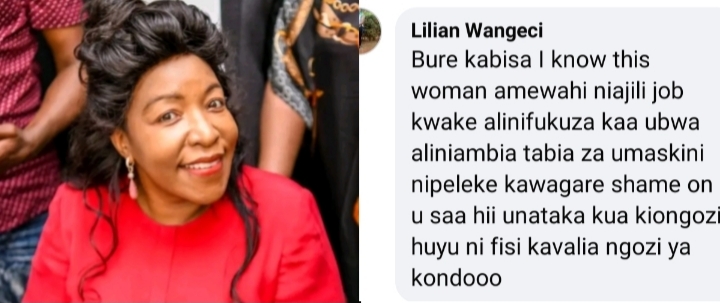 The comment carried anger and frustration. Wangeci claimed that she once worked for Kagure but was later fired in a humiliating manner.
